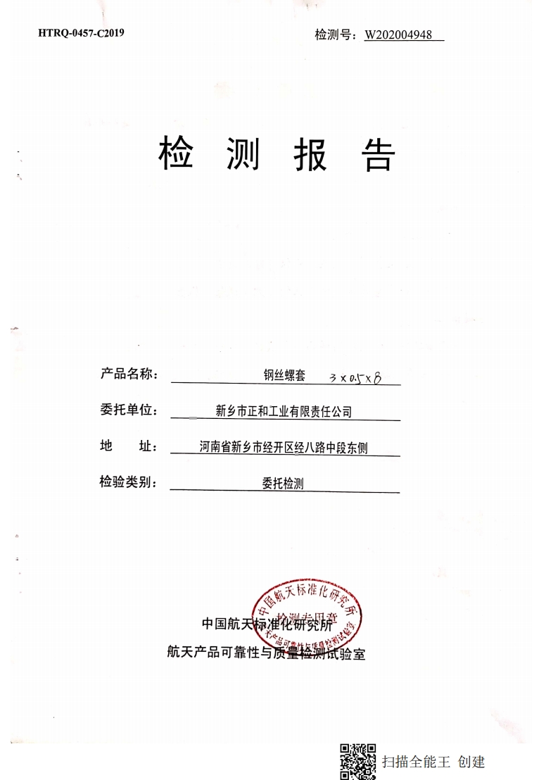 公司生產(chǎn)管理人員均嚴(yán)格培訓(xùn)后上崗。多年來,技術(shù)人員曾多次開發(fā)和研制新產(chǎn)品,替代進(jìn)口;尤其在螺紋連接新工藝上,為制造業(yè)做出了應(yīng)有的貢獻(xiàn)。并于2000年在鋼絲螺套的基礎(chǔ)上成功研制出具有鎖緊功能的自鎖螺母,該產(chǎn)品可以防止螺母在各類機(jī)械設(shè)備振動(dòng)時(shí)的松動(dòng),于2001年自行開發(fā)研制出55o圓柱管螺紋鋼絲螺套。公司提供標(biāo)準(zhǔn):軍標(biāo)、航標(biāo)、機(jī)械部標(biāo)、美標(biāo)、德標(biāo)、企標(biāo)等 。產(chǎn)品范圍更為廣泛,包括:米制粗、細(xì)牙螺紋,英制粗、細(xì)牙螺紋,管螺紋及各種非標(biāo)螺紋的設(shè)計(jì)和生產(chǎn)加工,我公司產(chǎn)品經(jīng)中國(guó)航空標(biāo)準(zhǔn)件檢測(cè)中心(303所)、中國(guó)航天標(biāo)準(zhǔn)件檢測(cè)中心(708所)檢測(cè),各項(xiàng)指標(biāo)均符合標(biāo)準(zhǔn)要求。